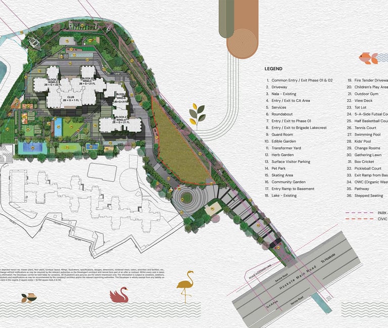Brigade Lakecrest is a premium residential project by the reputed Brigade Group, located Old Madras Road near Bhattarahalli Lake in Bangalore. Spanning 6 acres, this thoughtfully planned development features 604 luxurious apartments, designed with modern aesthetics, 100% Vastu compliance, and built using Mivan construction technology for superior quality. The project offers a perfect mix of luxury, comfort, and nature, with 80% open space and serene views of the nearby lake, creating a peaceful living environment. Brigade Lakecrest caters to diverse lifestyle needs, making it an ideal choice for families, working professionals, and investors.